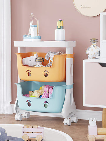 2-Tier Adorable Toy Shelf Organizer Trolley Storage Baskets with Wheels