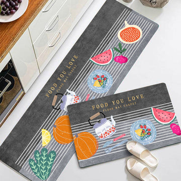 2-Piece Foodie Kitchen Area Rug Set Non-Slip Bathroom Mats
