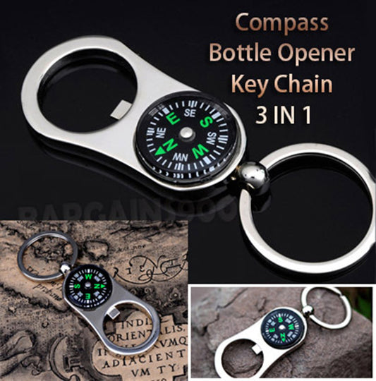 Compact 3-in-1 Compass Bottle Opener Keychain for Easy Navigation