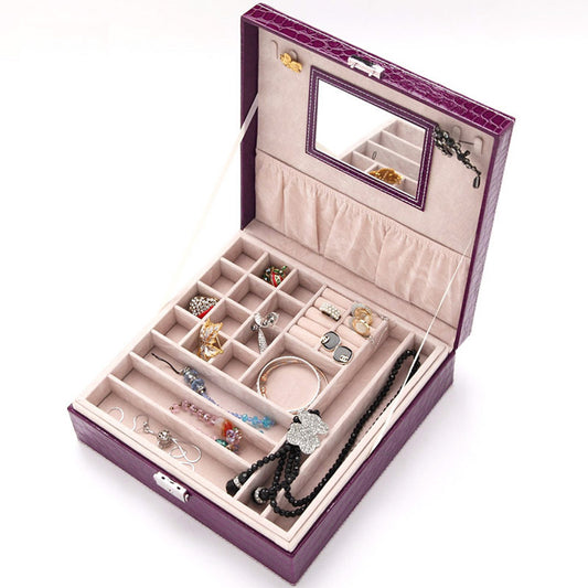 Elegant Crocodile Leather Jewellery Box Organiser Purple