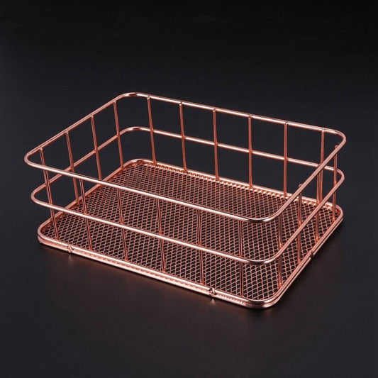 Elegant Rose Gold Metal Storage Basket Desktop Organizer