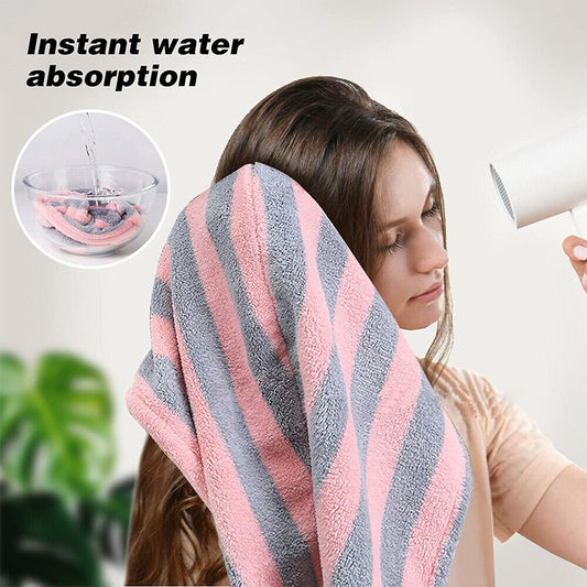 Microfiber Hair Drying Towel Turban Quick Dry Spa Head Wrap Hat Striped
