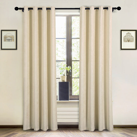 Pack of 2 Triple Layer Blackout Eyelet Curtains Beige