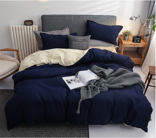 Double Size 4 Piece Quilt Cover Bedding Set Luxurious Navy and Cream
