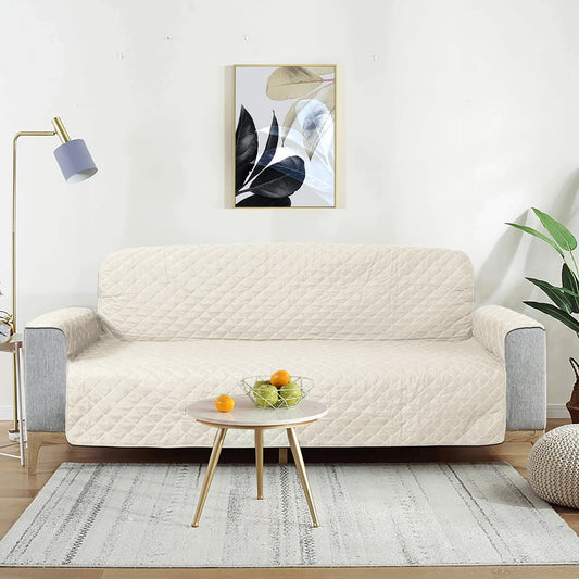 Deluxe Quilted Water Resistant Sofa Slipcover Furniture Protector Cream