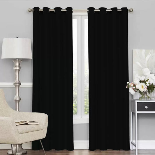 2 Pack 3 Layer Blackout Eyelet Curtains for Total Darkness Black