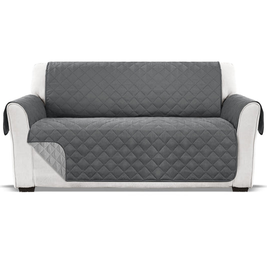 2-Seater Quilted Sofa Slipcover Water Resistant Couch Protector Grey