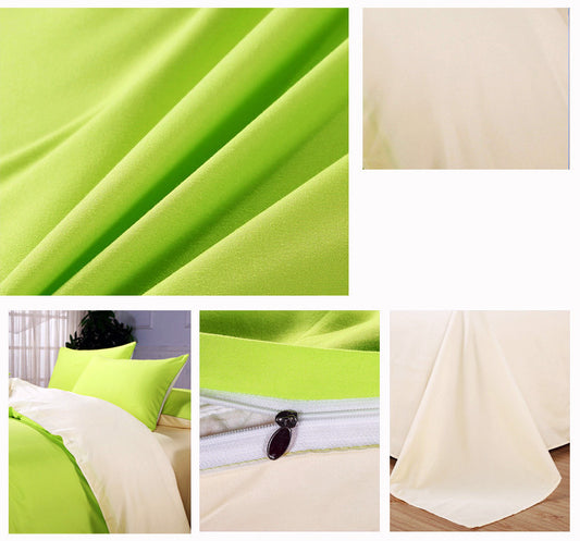 Double Size 4-Piece Quilt Cover Bedding Set - Fresh Green & Cream