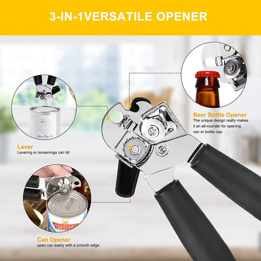 Multi-Purpose Stainless Steel Can and Bottle Opener for Kitchen and Camping
