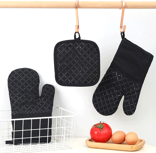 Heat Resistant Non-Slip Silicone Oven Mitts and Pot Holder Kitchen Set