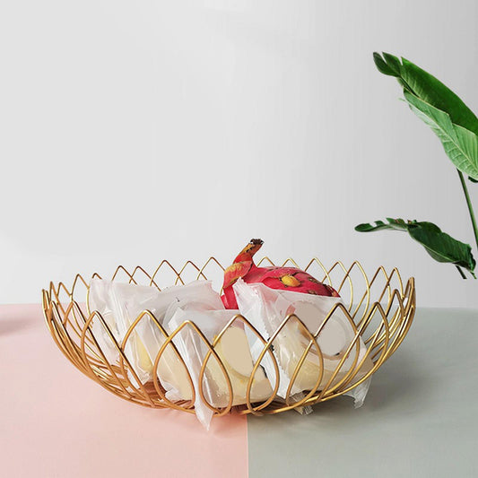 Large Gold Metal Fruit Bowl Decorative Kitchen Counter Food Tray