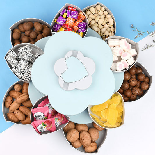 Rotating Multilayer Flower Snack Fruit Bowl with 10 Containers Blue