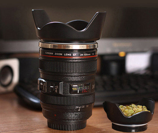 Stainless Steel Camera Lens Mug for Coffee and Tea Enthusiasts