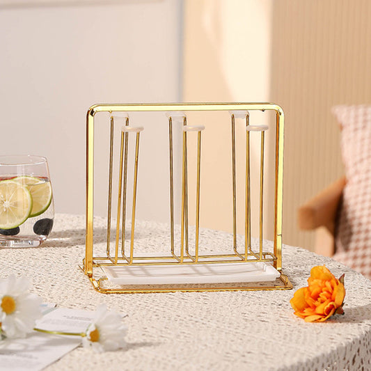 Gold Metal 6-Cup Glass Mug Drying Rack with Drain Tray for Kitchen Countertops