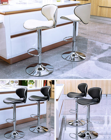 Set of 2 Modern PU Leather Kitchen Bar Stools White