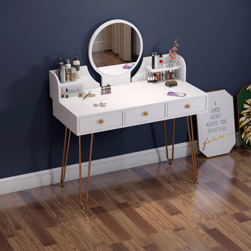Elegant Vanity Table with Mirror and Storage Drawers for Bedroom