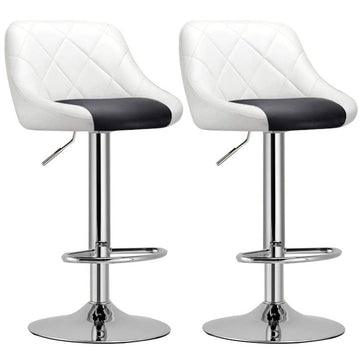 Set of 2 Modern High Back Faux Leather Bar Stools White Black