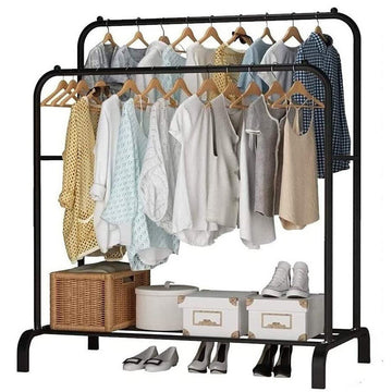 Double Coat Hanging Stand Wardrobe Clothes Hanger Rack Black