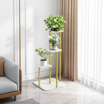 Luxor Multi-Tiered Marble Look Garden Plant Stand Planter Shelf White