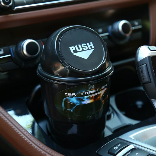 Compact Car Trash Can with Lid for Easy Waste Disposal Black