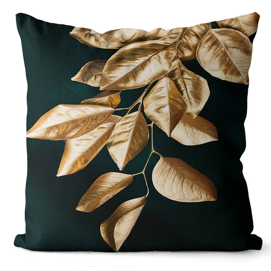 Golden Leaf Decorative Throw Pillow Cover for Home Decor