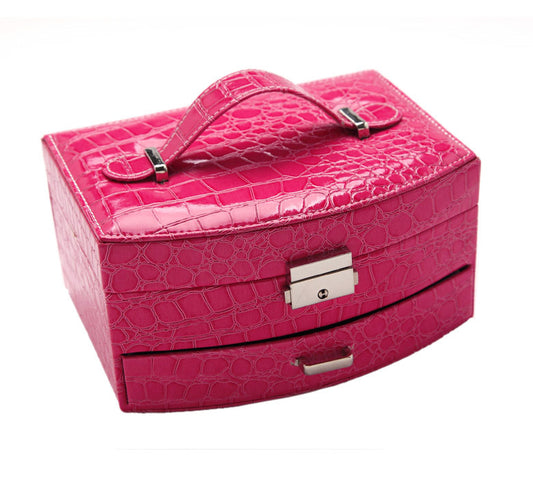 Elegant Pink Crocodile Leather Jewellery Box Organiser