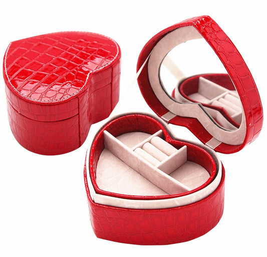 Heart-Shaped PU Crocodile Leather Jewellery Box for Elegant Storage