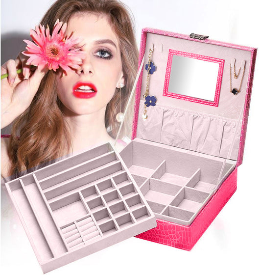 Hot Pink Luxury PU Leather Jewelry Box Organizer