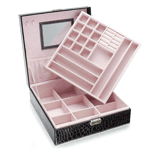 Luxury Crocodile Leather Jewellery Box Organizer Black