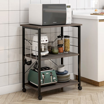 3-Tier Industrial Grey Rolling Kitchen Cart with Storage Shelves
