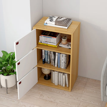 Spacious 10-Shelf 3-Door Wardrobe Cabinet Bookshelf White