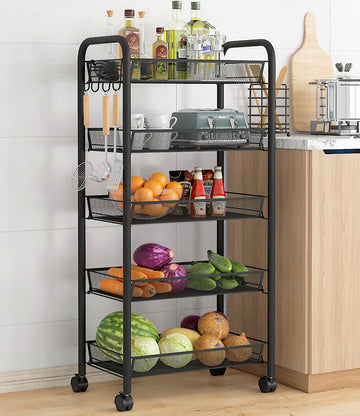 5 Tier Large Steel Multipurpose Storage Shelf Utility Cart Kitchen Trolley