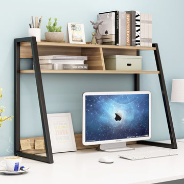 Versatile Desk Hutch Storage Shelf Unit Organizer Natural Oak
