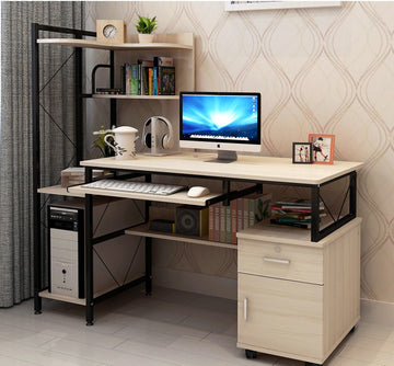 Stylish Wood and Metal Computer Desk with Shelf - White Oak