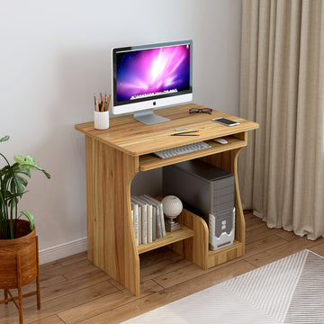 80cm Wood and Metal Computer Desk with Shelf White Oak