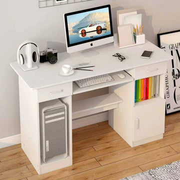 Spacious Office Computer Desk Workstation with Shelves and Drawers White