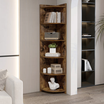 Stylish 6 Tier Large Rustic Wooden Corner Shelf Unit