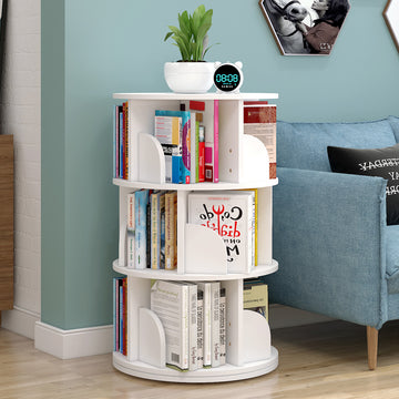 3 Tier Rotating Display Shelf Bookcase Organizer White