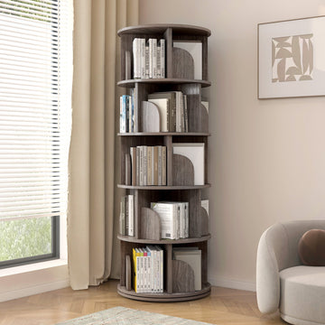 5 Tier Rotating Display Shelf Bookcase Organiser (Rustic Grey)