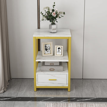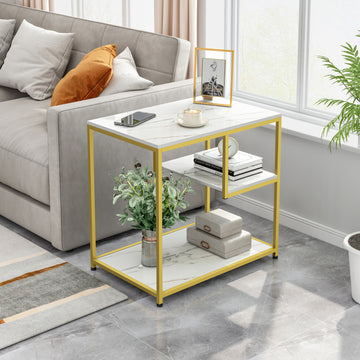 Luxor Marble Look Side Table with Magazine Shelf White