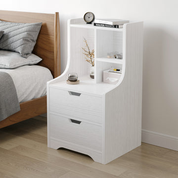 Elegant Tall 2-Drawer Bedside Table with Storage Shelves White