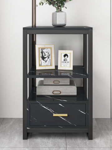 Luxor Marble Look Bedside Table Nightstand Black
