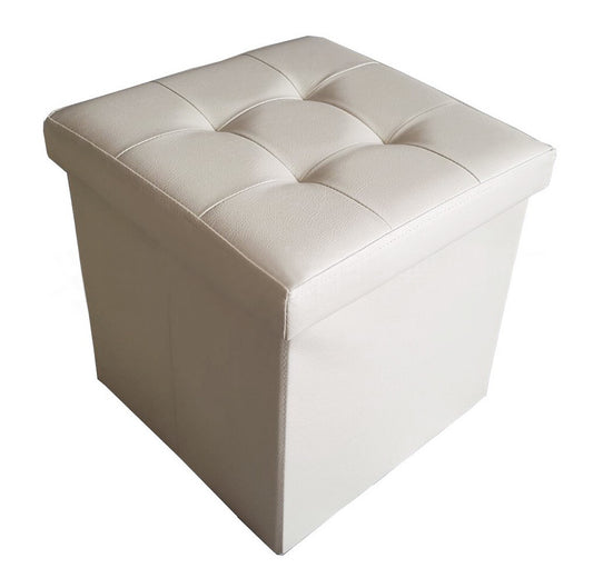 50L Foldable PU Leather Storage Ottoman White