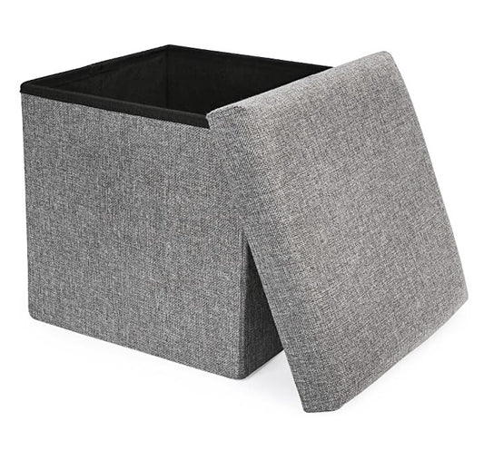 Multifunction Linen Ottoman Folding Storage Stool Grey