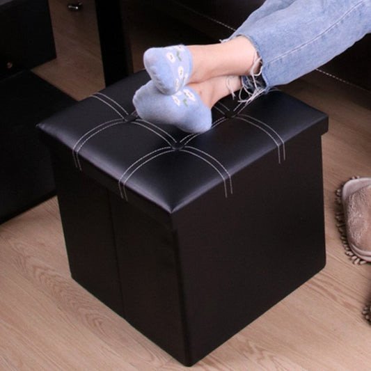 50L Foldable Storage Ottoman PU Leather Black