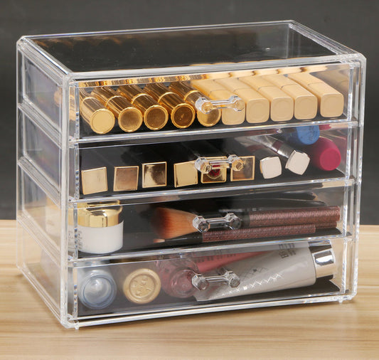 4 Large Drawers Crystal Clear Acrylic Makeup Organizer Storage Case