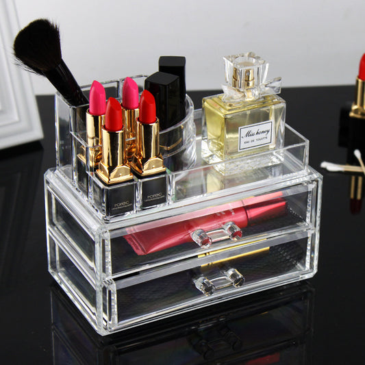 Clear Crystal 2-Drawer Cosmetic and Jewelry Organizer Box