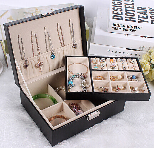 Elegant Black PU Leather Jewellery Box Organizer for Women