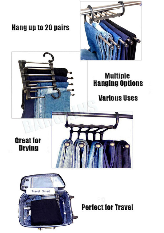 5-in-1 Stainless Steel Retractable Pants Clothes Hanger Organizer