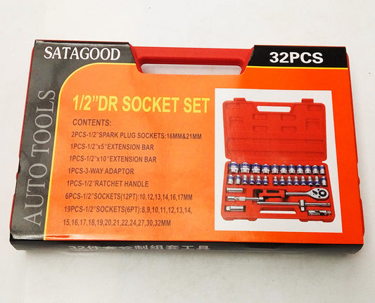 32-Piece 1/2" Drive Ratchet Socket Wrench Mechanics Tool Set